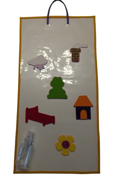 POESÍA MOJADA COMPLETA: Viene el soporte de 50 x 25 aprox., el rociador y la poesía (en este caso Sapito glo glo glo).