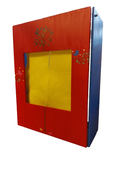 Teatro de títeres de madera de 35 x 30, con cortina de pañolenci.